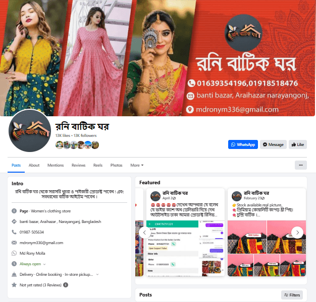 আমাদের ফেসবুক পেজে রনি বাটিক ঘর ভিজিট করুন এবং আমাদের সর্বশেষ কালেকশন সম্পর্কে আপডেট পান।