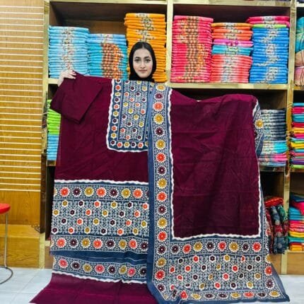 SKU: N/A Category: Mom Batik Three Pieces Tags: batik three pieces, chundri batik