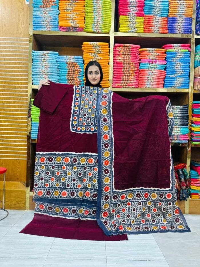 SKU: N/A Category: Kalamkari Dress Tags: batik three pieces, chundri batik, kalamkari