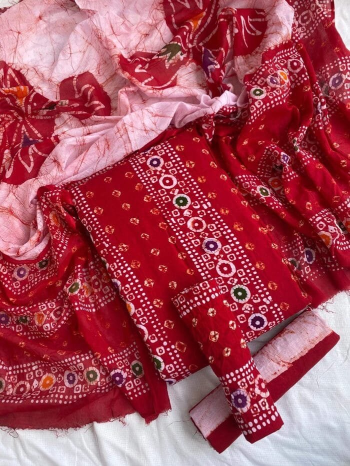 প্রিমিয়াম কোয়ালিটি চুন্দ্রি থ্রি পিছ – Chundri Batik Three Pieces Price in Bangladesh at Rony Batik